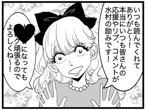 2019年05月14日 水村よりご報告! こんばんは、水村です。今夜はご報告があります。言おうかどうか迷ったのですが…えー、この度水村は入籍致しました!えっ水村が人妻とかwwwwww全然そんな感じに見えないよね!自分でも違和感に笑えてくるwでもスト界にはスト界の彼女と旦那様をはべせているくそ女です。(愛 ... 続きを読む こんばんは、水村です。今夜はご報告があります。言おうかどうか迷ったのですが…えー、この度水村は入籍致しました!えっ水村が人妻とかwwwwww全然そんな感じに見えないよね!自分でも違和感に笑えてくるwでもスト界にはスト界の彼女と旦那様をはべせているくそ女です。(愛してる)まぁ入籍したと言ってもここ直近ではなく、今よりもうちょい前にしました。別に言う必要もないか?とも思ったのですが、近頃直接お知り合いになる方も多く、 急な夢ちゃん宅へのお泊まりに飼い猫の心配をして下さる方もいらっしゃり、隠すのも不自然だなと思い、報告に至りました。ブログで言っていたことと違うではないか、とおっしゃる方もいるかと思いますが、ブログでの出来事、生徒とのやりとりなどは全て時系列がバラバラであり、尚且つ、個人情報漏洩を防ぐ為にフィクション、様々な出来事をmixしてお届けしているブログです。勿論本当に起こった出来事をベースに描き起こしてはいますが、様々な事情を鑑みた上で成立していたブログです。ミズムリズムを楽しんで下さっていた方にはご理解頂けるかとは思いますが、 今後も変わらぬご愛顧を頂ければ幸いです。 さて、「結婚したのに毎週ストリップ?」「新婚のくせに夫ほっときすぎじゃない?」と様々なご意見がおありだとは思いますが、 そこからはあくまでいち一般人の水村ですので、どうかプライベートに関するご質問、ご意見はご遠慮ください。 と、まぁ、重苦しい結婚発表になった訳ですが(笑)、今最高にハッピーですし、これからも楽しくブログもストリップもプライベートもやっていきたいと思います!夫はとても素敵な人で、こんな水村に寛容で、賢く優しい強い人です。今後ほとんど夫の話題は出てこないと思いますが、今回限りでも皆様に祝って頂ければ幸いです。 今後とも、ミズムリズムを宜しくお願い致します。水村