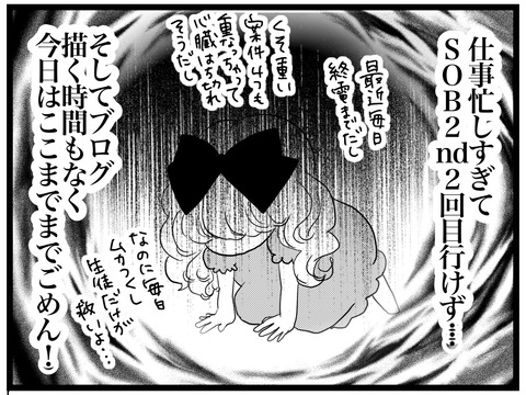 2019年11月20日 時間をくれ〜〜〜 愚痴だらけですまんなでも私の仕事はほんと、個人プレーな部分がかなり多いので、性格的にはすごく向いてるんだよな。だから、苦しいことも辛いことも嫌なことも全部飲み込んで明日も元気に働くことが私の為でもある。 SOBブログはあと7景とフィナーレの下書き終わったら、 ... 続きを読む 愚痴だらけですまんなでも私の仕事はほんと、個人プレーな部分がかなり多いので、性格的にはすごく向いてるんだよな。だから、苦しいことも辛いことも嫌なことも全部飲み込んで明日も元気に働くことが私の為でもある。 SOBブログはあと7景とフィナーレの下書き終わったら、ペン入れ入れるよ!