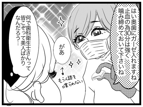2020年03月14日 親知らず抜歯をしてきた!【麻酔編】 親知らず抜歯を大学病院で抜歯してきた話 ネタバレするとこの麻酔の注射が1番痛かった。しかも4本くらい打つの、歯茎に。ちくっじゃなくて、ギュウウゥゥン!!!…って疼くような痛みで嫌〜な痛みだったなー…心の中で「ギエエ!」と叫んでました抜歯になかなか入らなくてご ... 続きを読む 親知らず抜歯を大学病院で抜歯してきた話 ネタバレするとこの麻酔の注射が1番痛かった。しかも4本くらい打つの、歯茎に。ちくっじゃなくて、ギュウウゥゥン!!!…って疼くような痛みで嫌〜な痛みだったなー…心の中で「ギエエ!」と叫んでました抜歯になかなか入らなくてごめんw