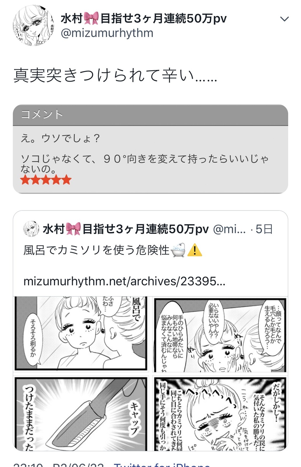 2020年06月23日 風呂でカミソリを使う危険性 なお一度手を洗うという選択肢はない親指パクパクしてていてぇ↓こっちも読んでみてね!↓インスタのストーリーとTwitterのツイートの内容と全く違う事呟いてるのでよかったら両方どうぞ!! ... 続きを読む なお一度手を洗うという選択肢はない親指パクパクしてていてぇ↓こっちも読んでみてね!↓インスタのストーリーとTwitterのツイートの内容と全く違う事呟いてるのでよかったら両方どうぞ!!
